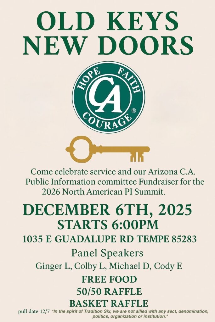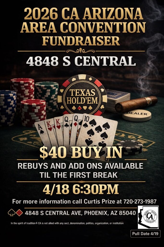 The best way to reach someone is to speak to them on a common level. The members of C.A. are all recovering addicts who maintain their individual sobriety by working with others. We come from various social, ethnic, economic and religious backgrounds, but what we have in common is addiction.
